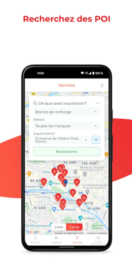 - A geolocation tool integrating the list of services around you