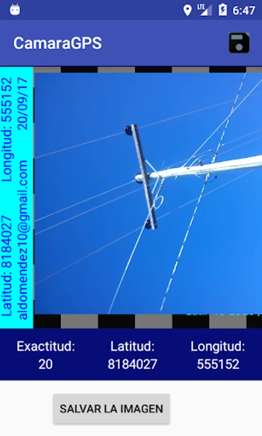 The application lets you take pictures tagged with the location of the mobile device, ie the coordinates of the location for later viewing on a Geographic Information System (GIS). The settling time of the location is based on the characteristics of the mobile device.