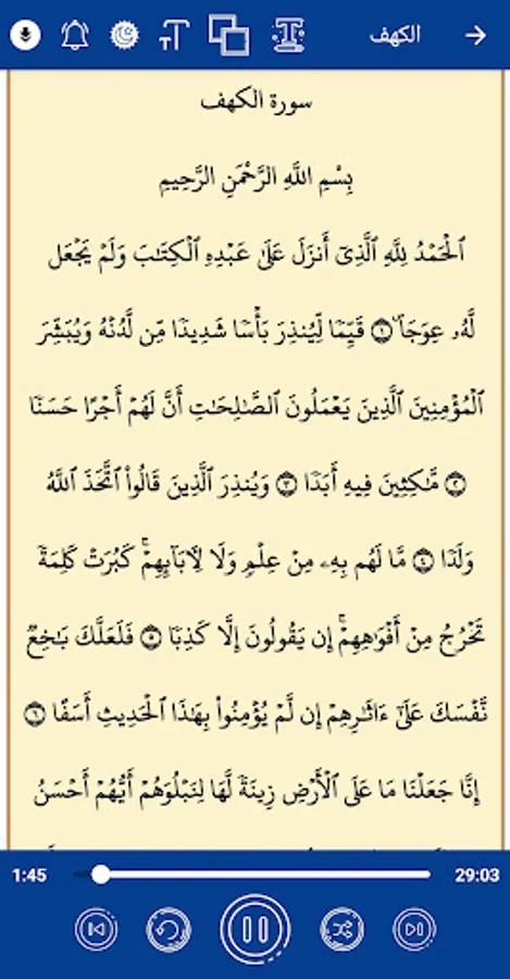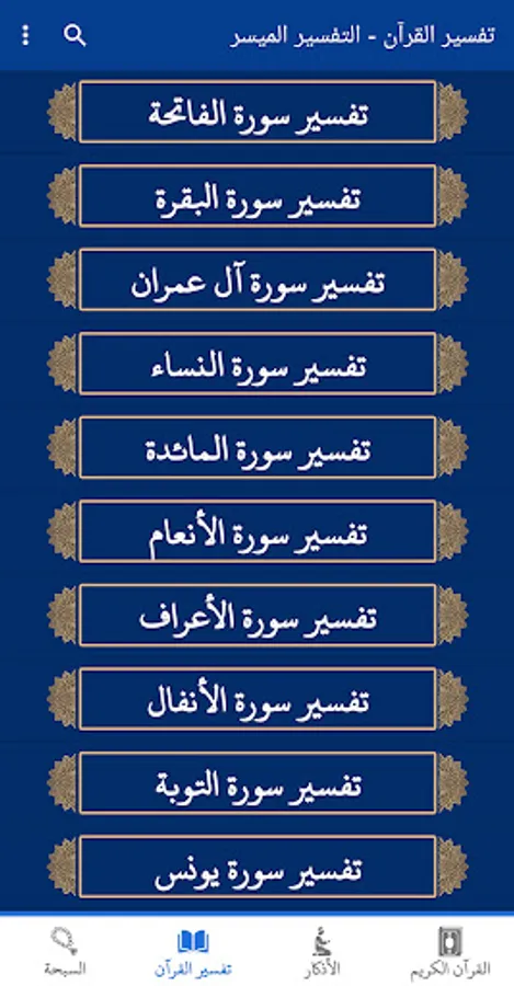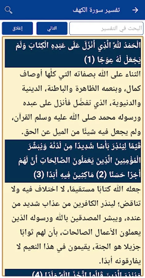 Through the application, you can read the interpretation of the surahs of the Noble Qur’an completely and for free, and you can copy the interpretation of the verse and send it to anyone you want, you can also quickly search for the interpretation of any verse.