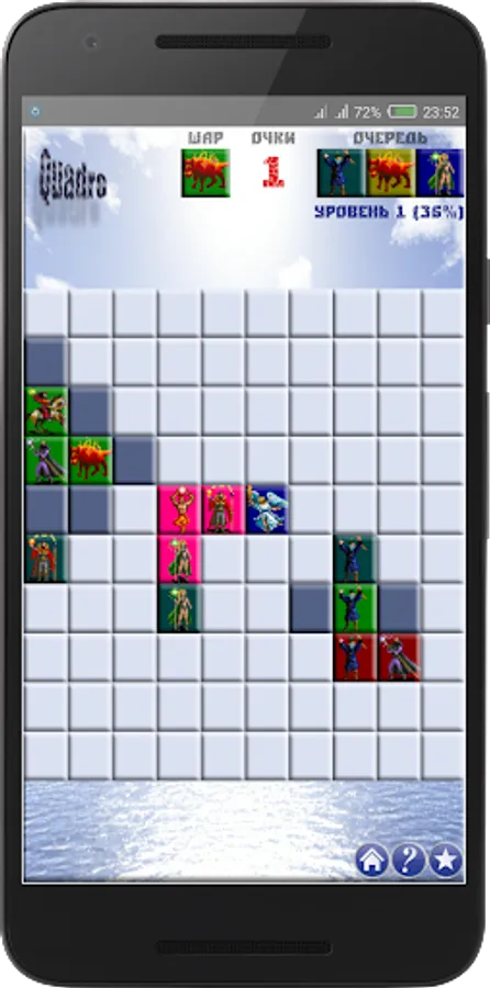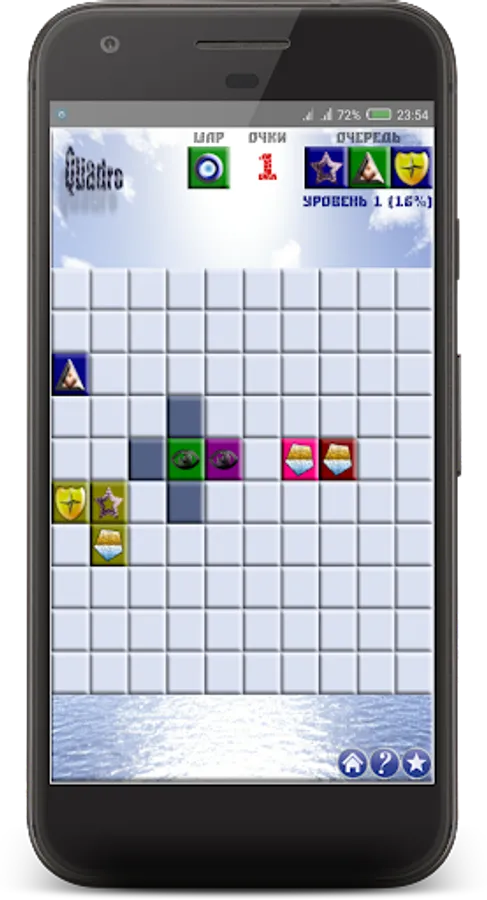 * Quadro - a logic game for the correct placement of balls, taking into account their color and pattern.
