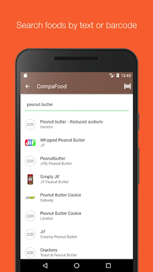 Just search what you're going to eat, by text or scanning the barcode, and get the nutrional info. You can also add the food to your comparison list to understand what fit better your needs.