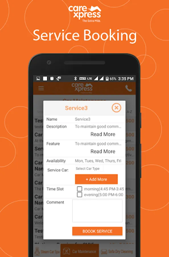 Cars are no more a commodity of luxury, its a necessity. Buying is easy but maintaining it immaculately requires investment of valuable time and money. Understanding the valuable time lost for various services, and all the misinformation being spread around, we at CareXpress have ventured to provide the much needed services of your cars at your doorstep at a time convenient to you. This results in saving of your precious time that can be spent doing better things, like maybe just hanging out with the family.