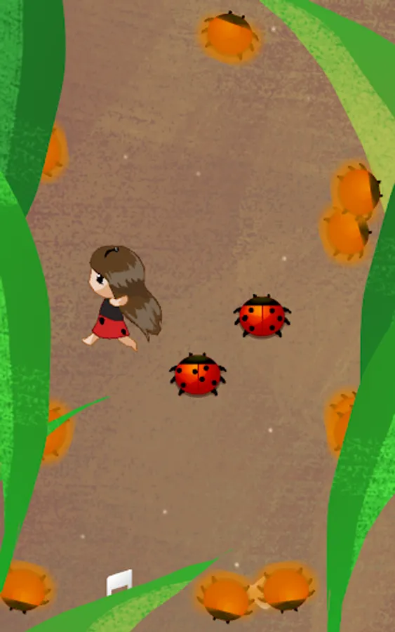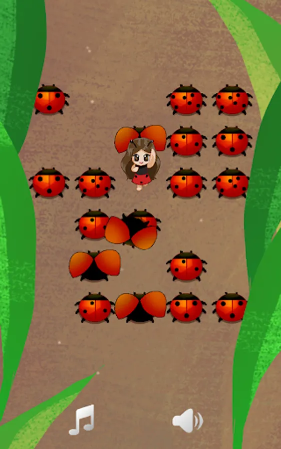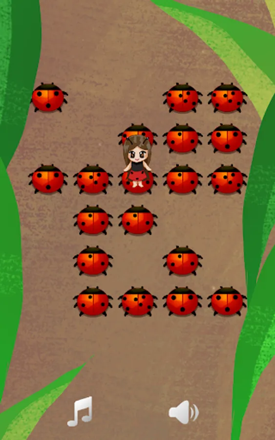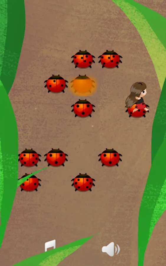 Help her solve puzzles by jumping from bug to bug without jumping backwards. Watch as the ladybugs fly away after you jump from them.