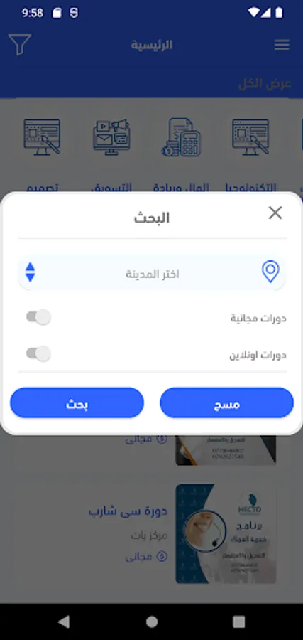 An electronic platform that aims to provide training and educational services in various fields. The platform targets all age groups through the diversity of the content provided and the multiplicity of certified trainers with high qualifications. It also aims to attract centers, trainers and trainees in one platform that facilitates their connection, facilitates communication and answers inquiries among them.