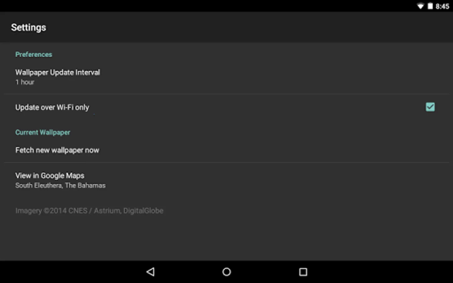 * Double tap the wallpaper for features including current wallpaper location details and ability to pull up location in Google Maps or manually fetch new wallpaper