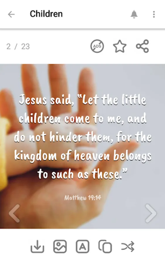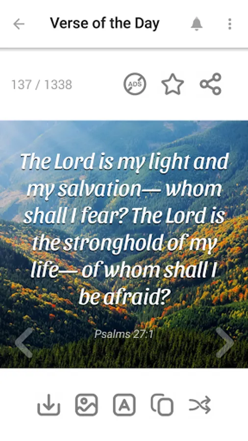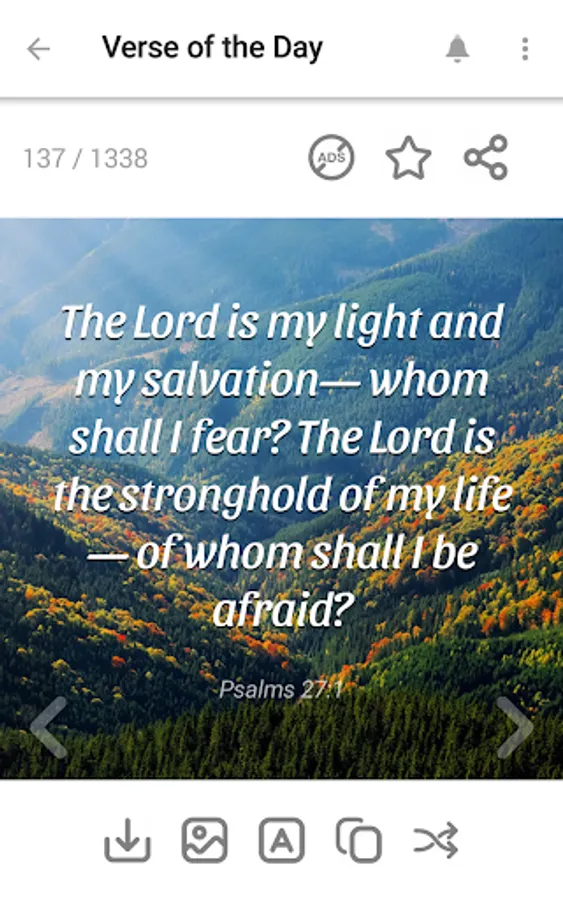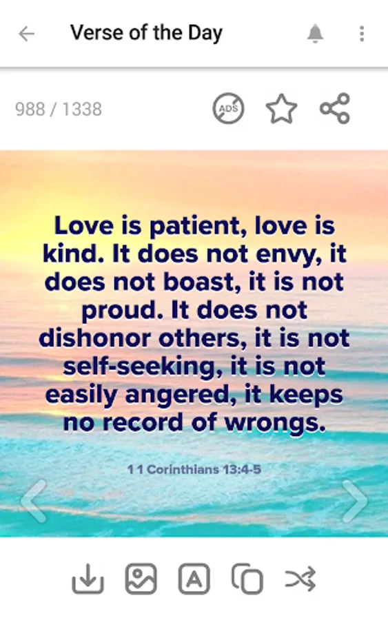 Bible verse of the day is a fast, light, free offline bible verse tool for your daily study. It allows you to stay connected with God with various bible verse and get an immersive experience for your daily prayer.