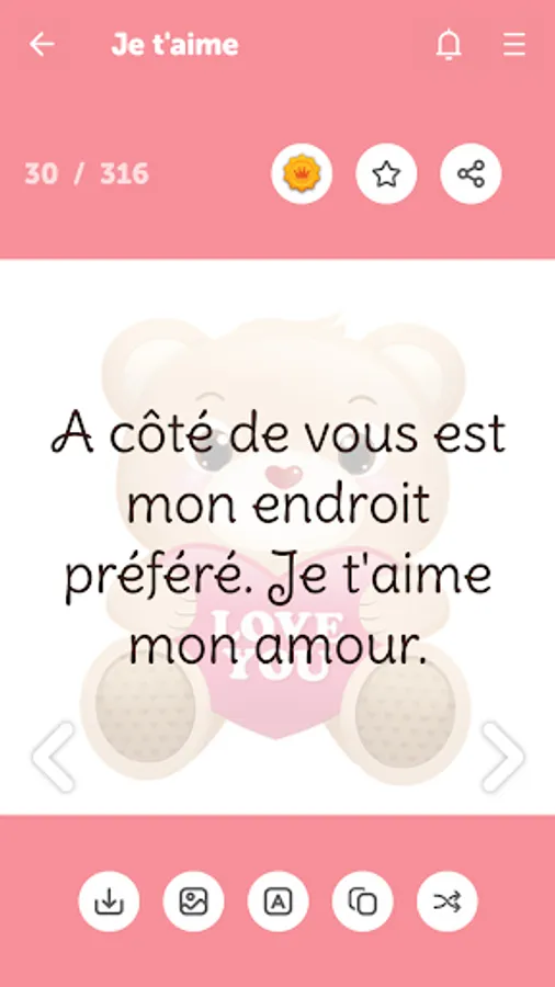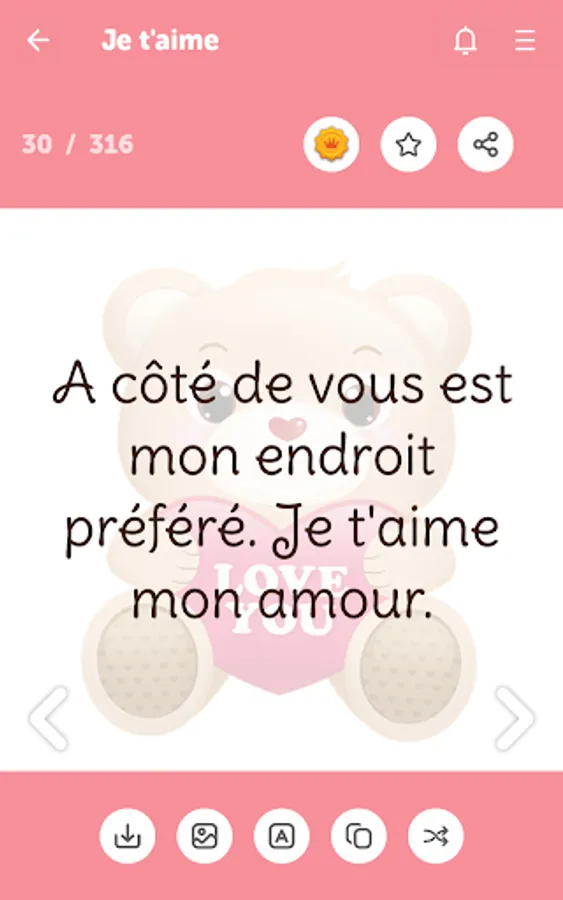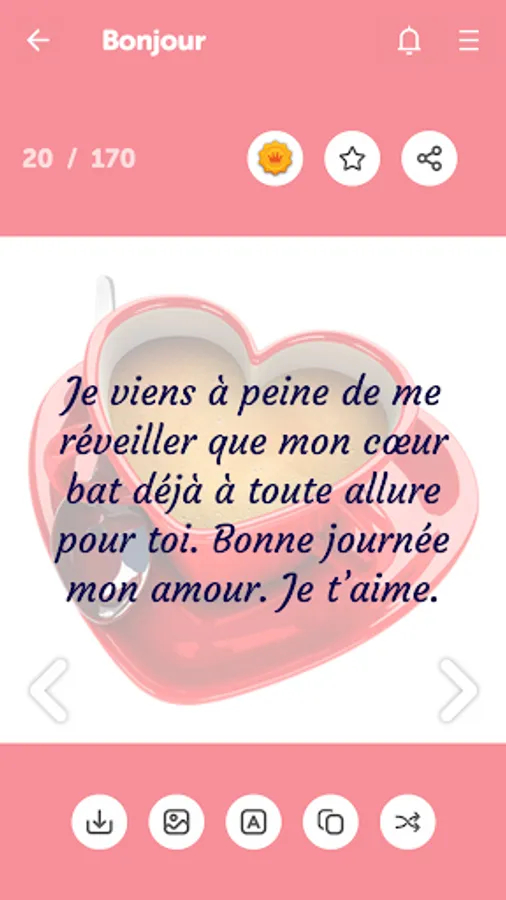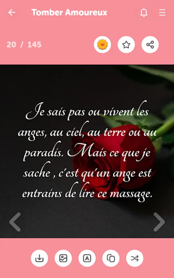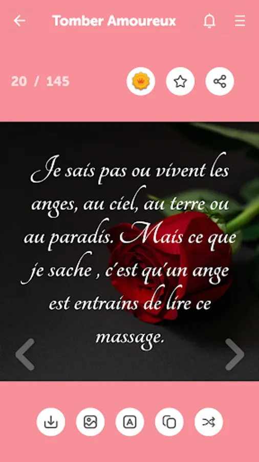 With this app, you can easily express your feelings to your love, girlfriend or boyfriend. You can show your love easily. You have full access to all categories of messages and copy or share the messages with just one click.