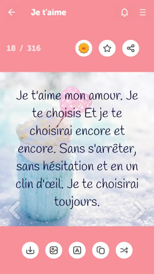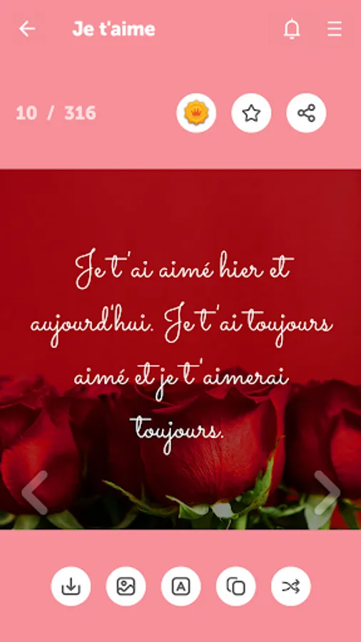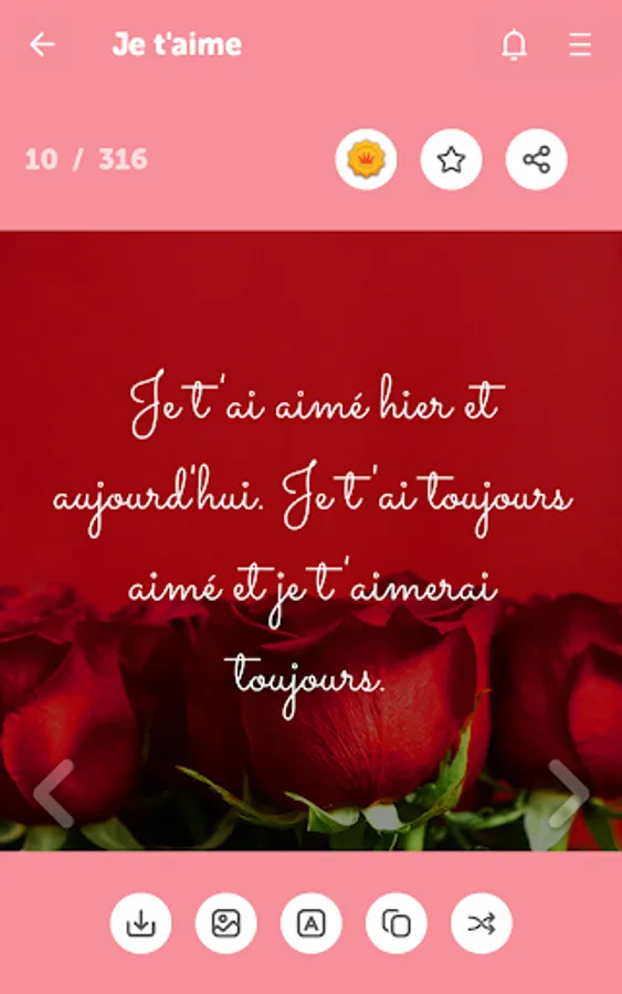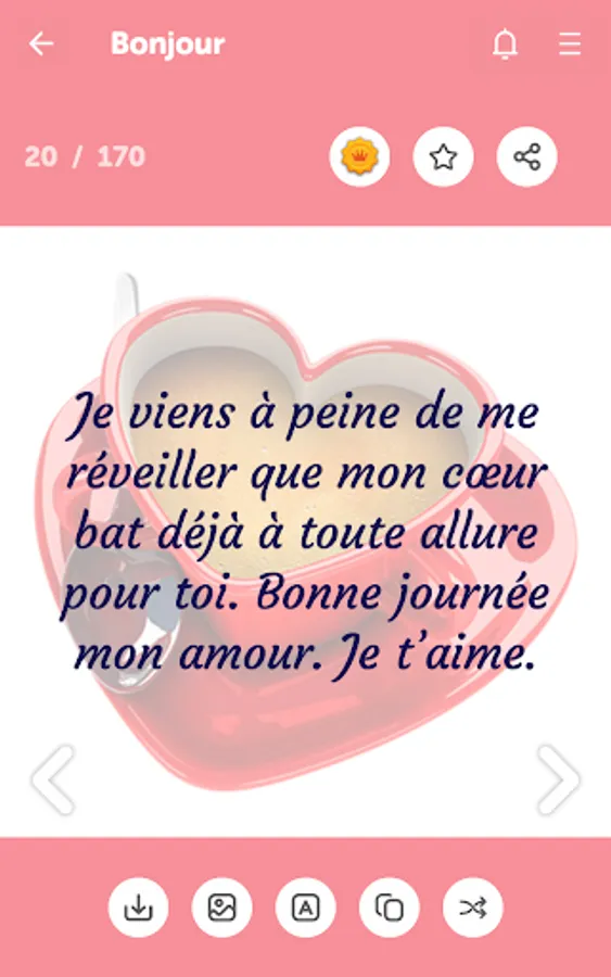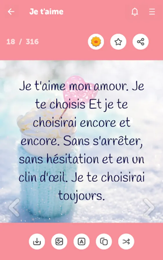 ✔ Easily share love messages as picture or text
