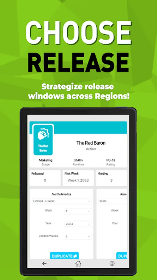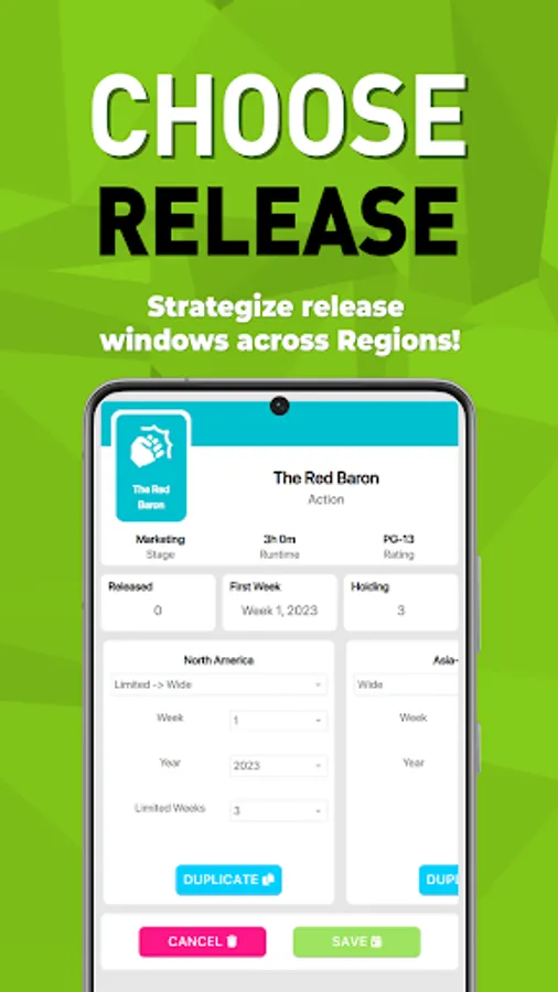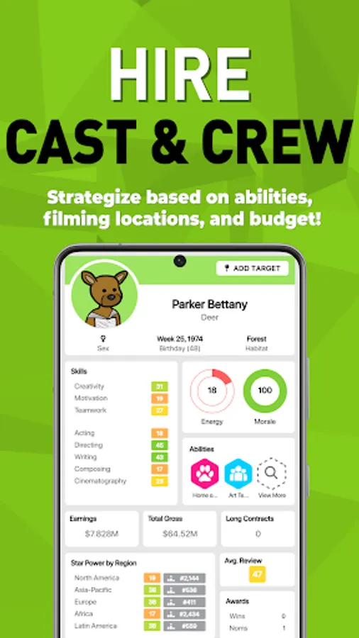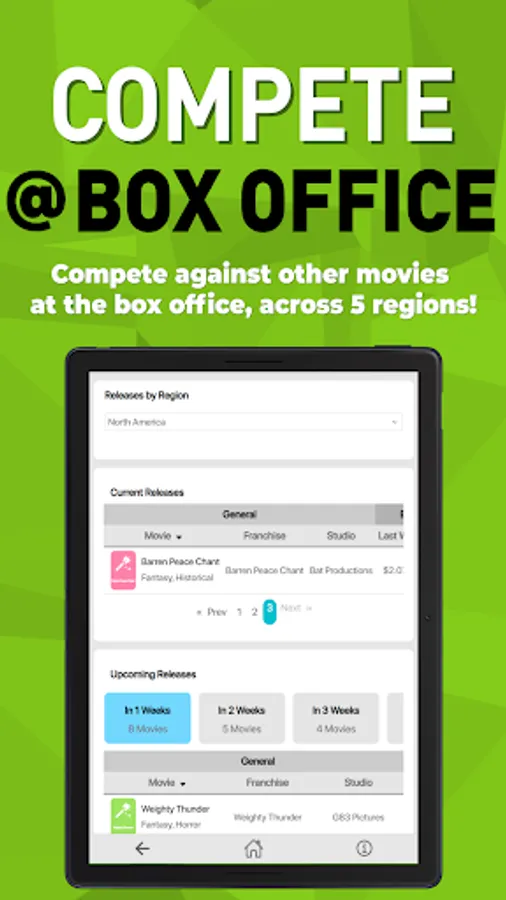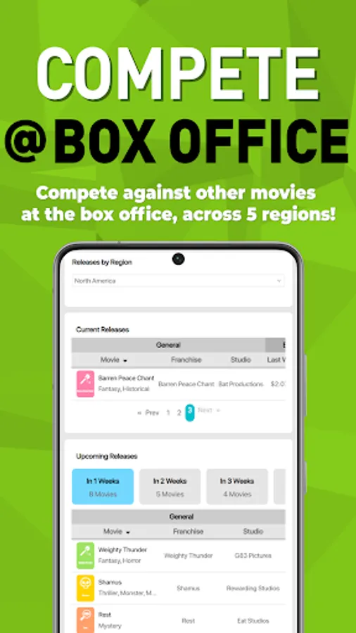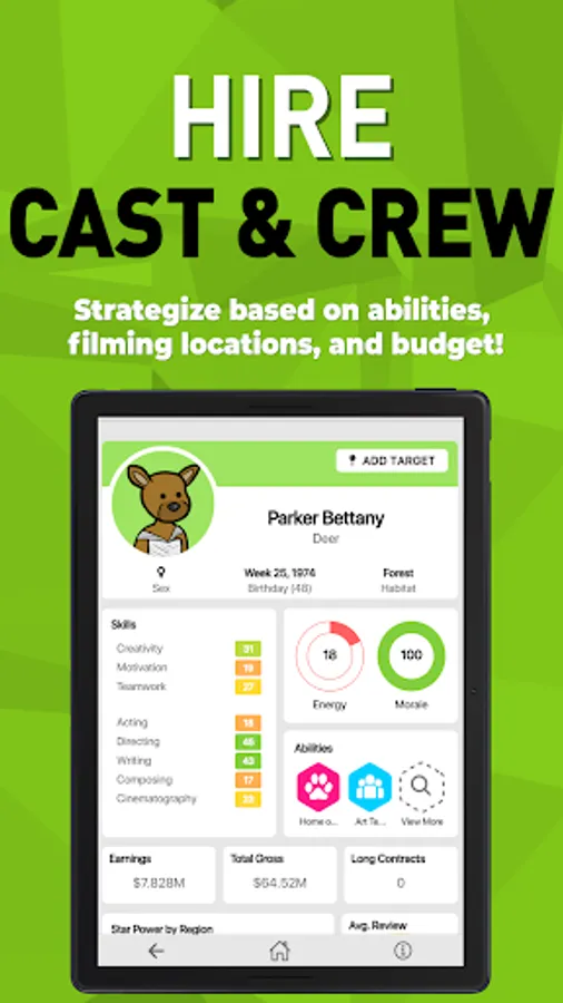 Create your own scripts, or buy existing scripts off the market, then cast and negotiate cast contracts. Set opportune release dates and run marketing campaigns, for the best possible opening weekend.