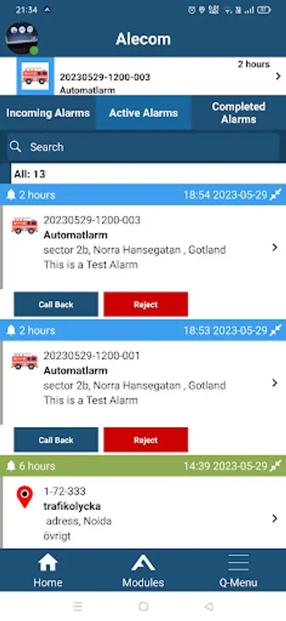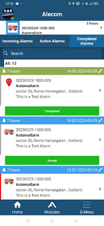 Alecom112 app can be used by emergency services to receive and manage the SOS alarms received from the government.