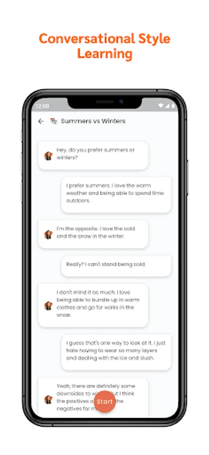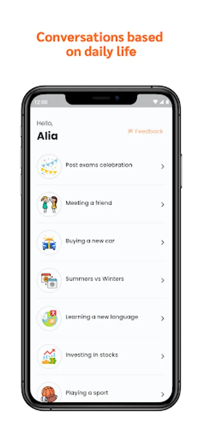 When you open the app, you will find a list of topics. Choose any topic from the list. Then click the start button. This will start the conversation. Aleena will speak the first sentence and then she will wait for you to read your line. Followed by Aleena’s line again and then yours, and so on.