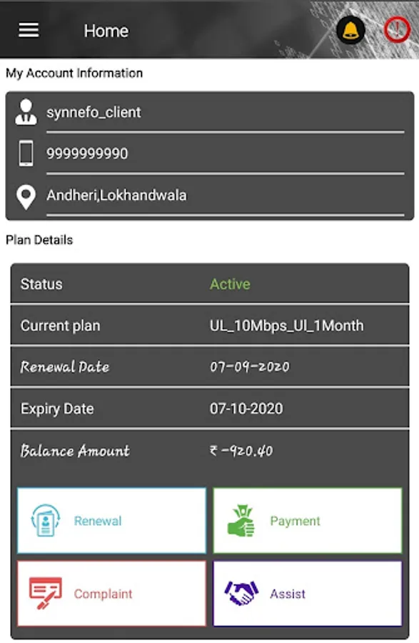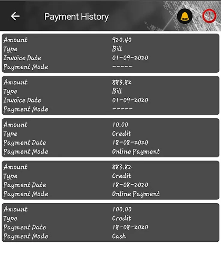 ⌑ Bill payments: View your bills and pay online. If you want to pay in cash, raise a request for payment pickup and we will collect the payment from you at your convenient time.