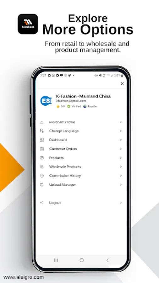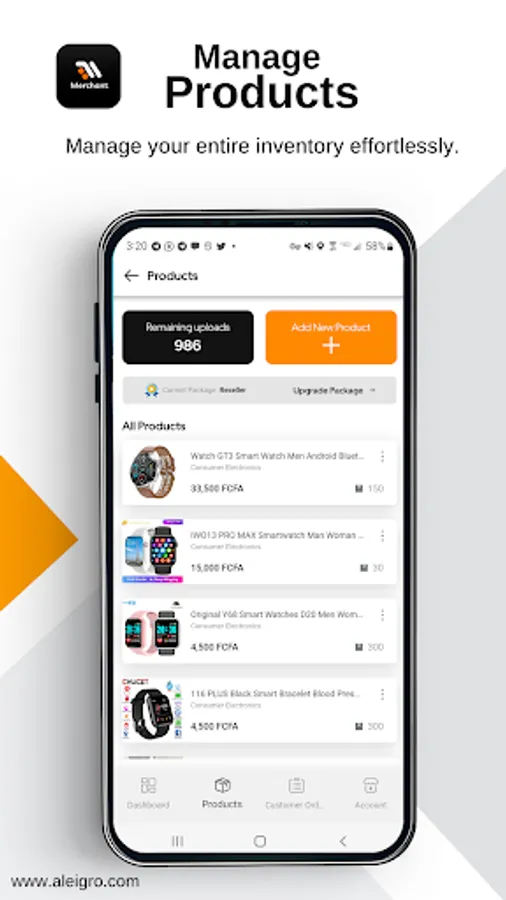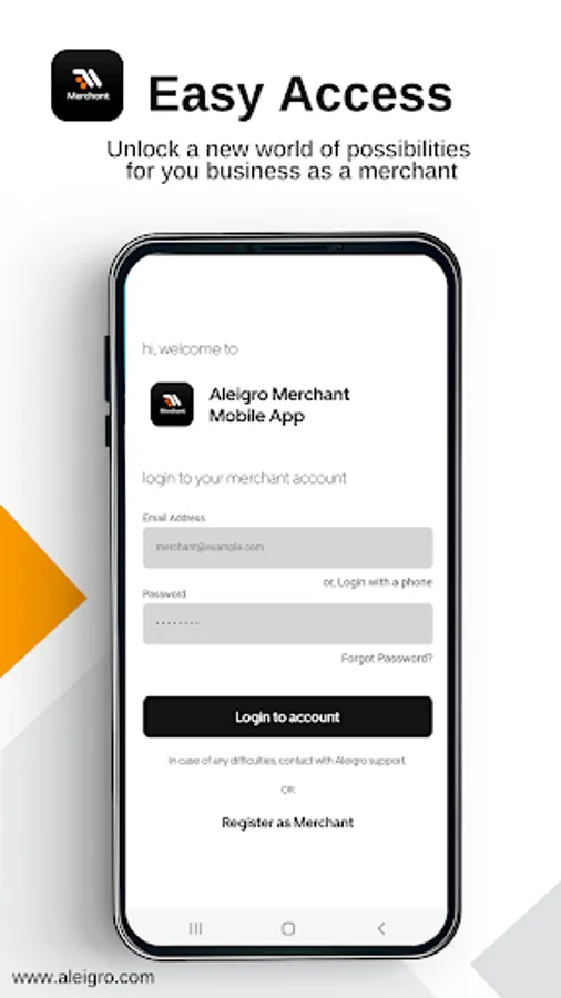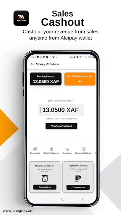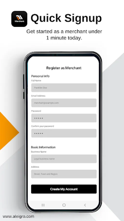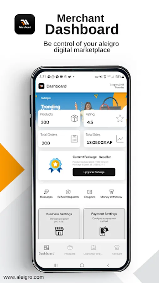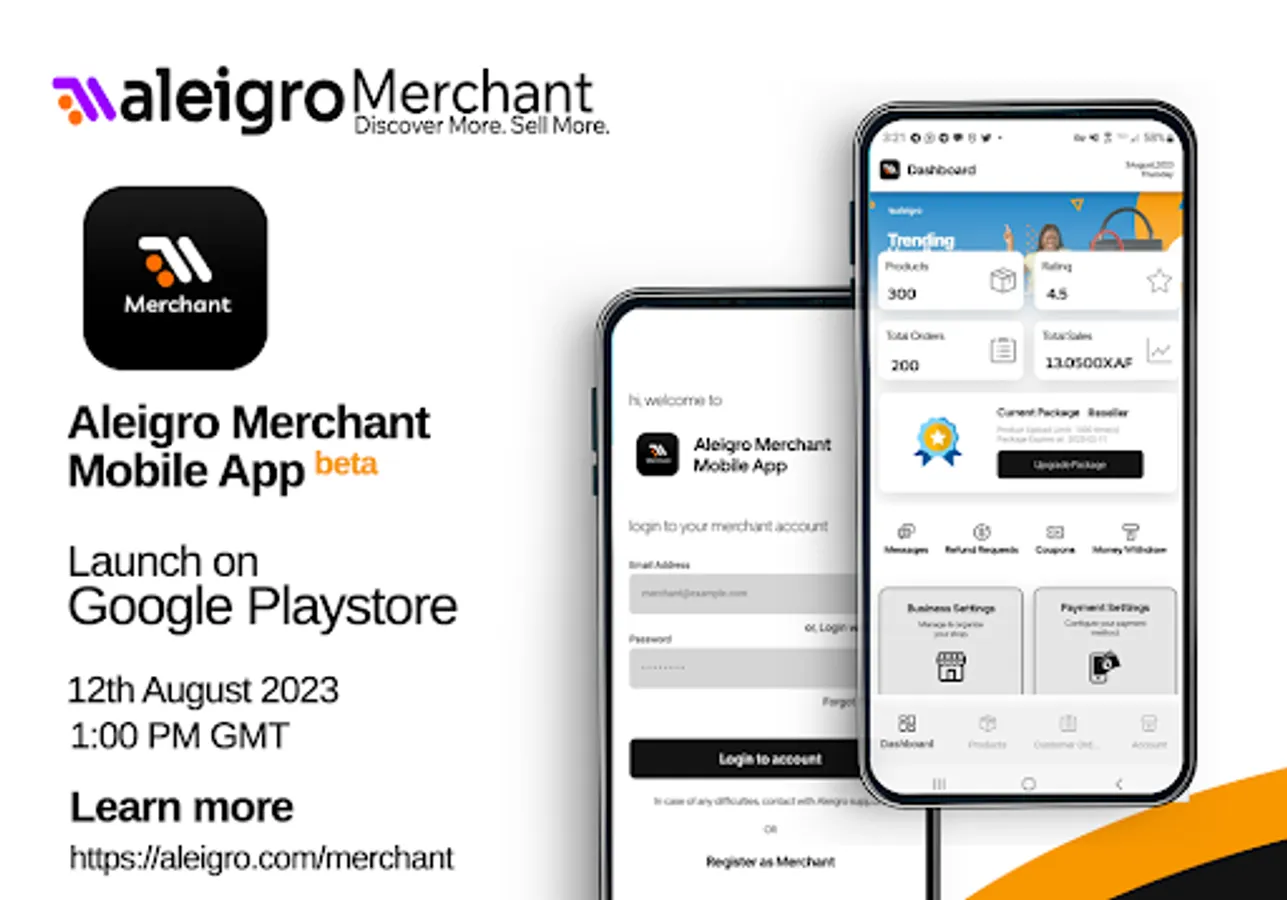 The Aleigro merchant app makes it easy to set up and manage your Aleigro digital marketplace in the comfort of your home.