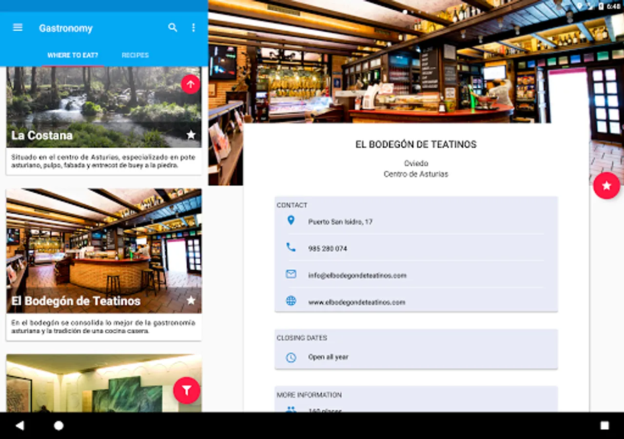 Discover Asturias invites you to discover Asturias in the easiest and most entertaining way, everything from your mobile and with just a finger. We offer you an application based on 100% Android that will adapt to both a Smartphone and a Tablet whether you are in portrait mode or landscape mode.