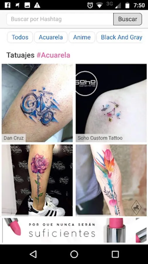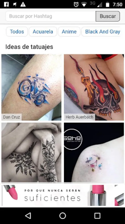 The application is designed based on Hashtags, each hashtag will open a new board with images of tattoos, it has a search engine with which you can find the subject you are looking for faster.
