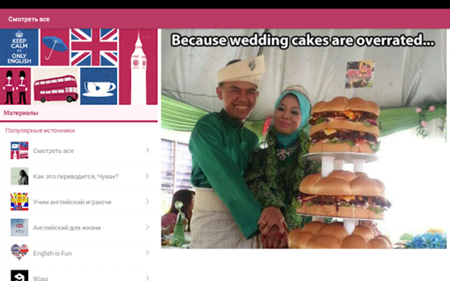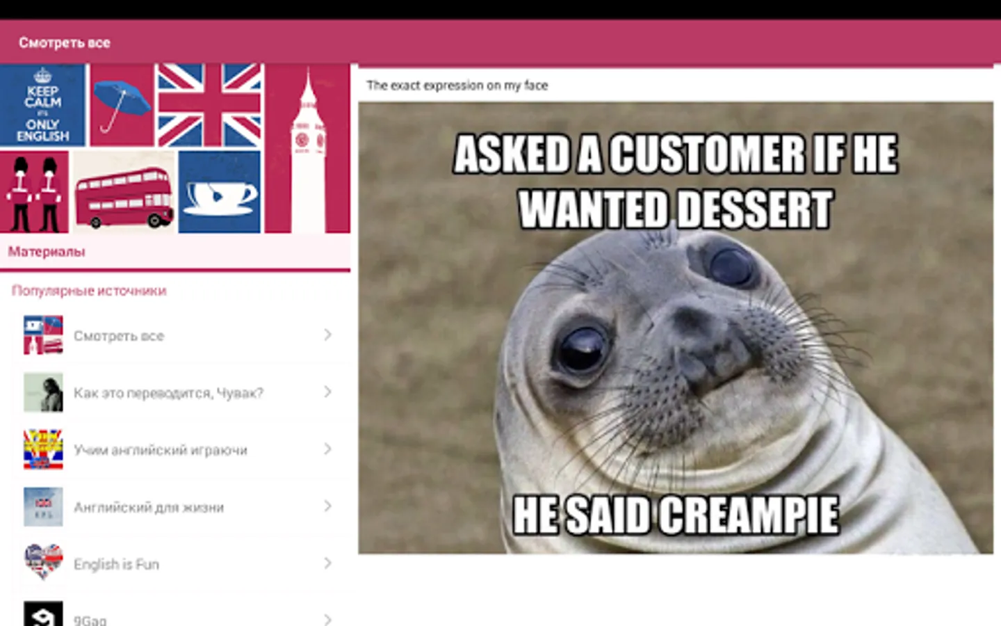 A large number of photos of jokes, pictures, useful materials in English, which will help to gain vocabulary in English and just have fun.