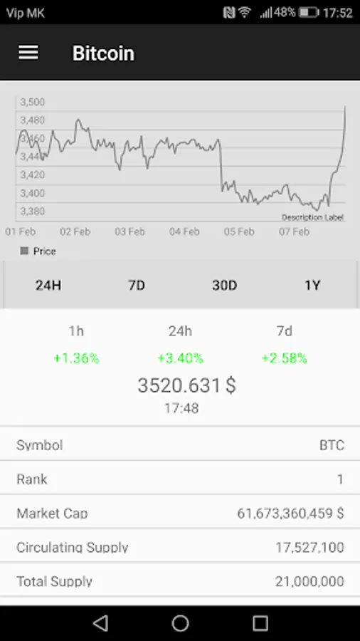 - Other stats like rank, market cap, circulating supply and total supply