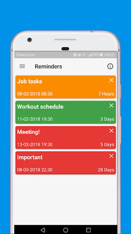 - Dedicated reminder screen for planning and organizing upcoming top notifications