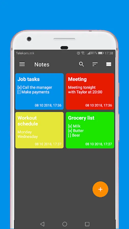 Notes will give you best note taking and editing experience when you create and take notes, to do lists, memo, drawings and reminders. Perfect notepad and organizer is key for productivity in daily life, that's why you can customize, manage and organize everynote by priority, color and category for great productivity. Free, simple and easy to use, with lot of colors, it is one of the best notepad app for android.