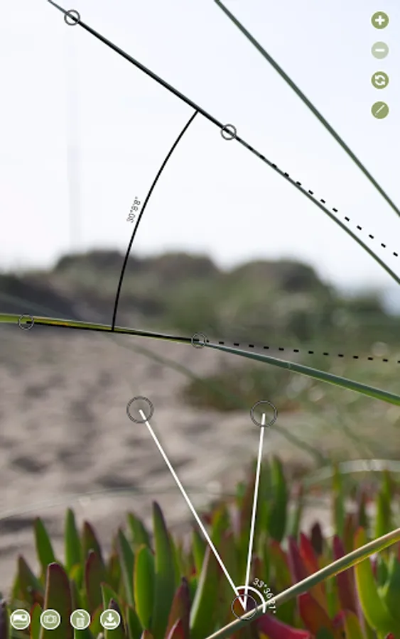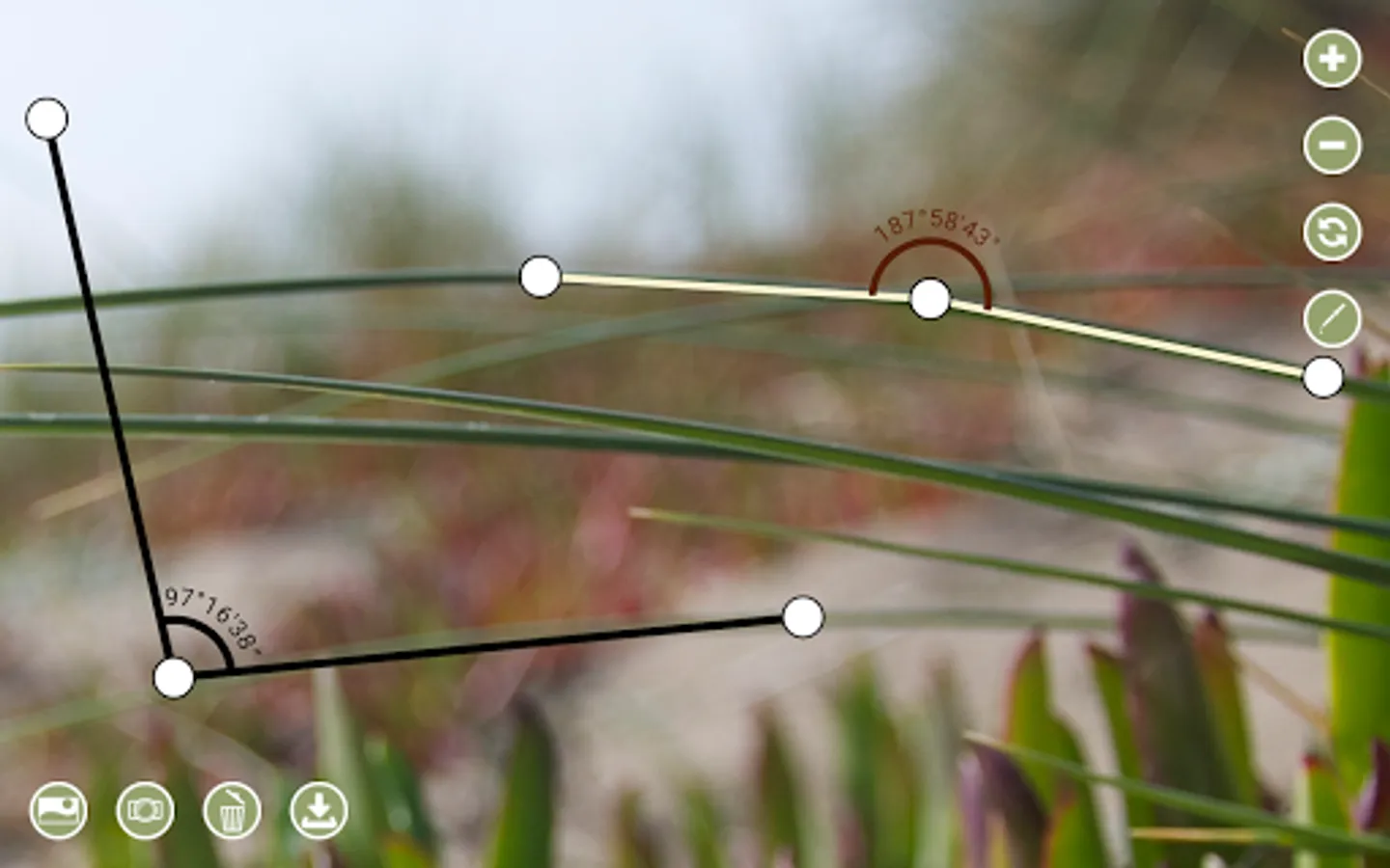 Due to the addition of new tools or deleting old it is possible to receive and compare information from several angles at once. Scaling, moving the object and the possibility of changing of instrument's color allows you to measure angles easily, fast and accurately.