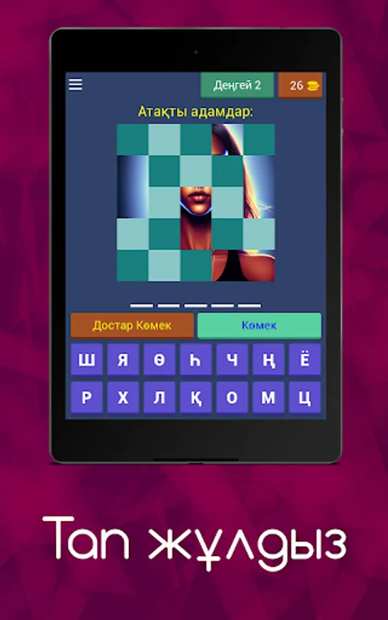 Tap Star Quiz Game is a game where you have to guess the celebrity from a photo covered with tiles.