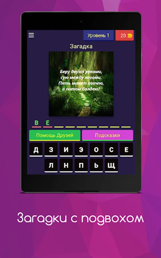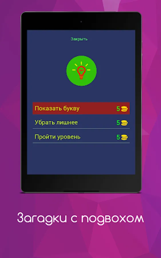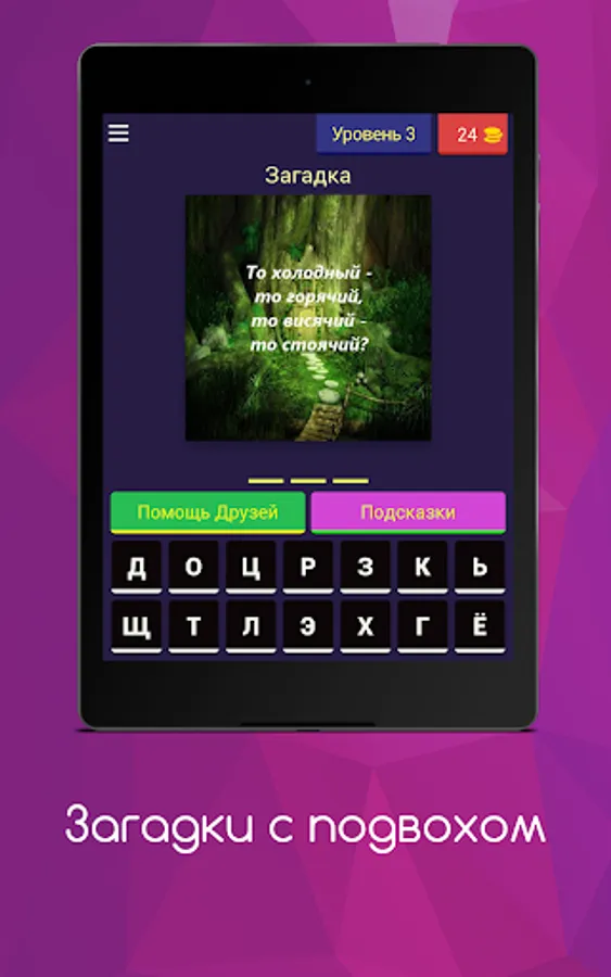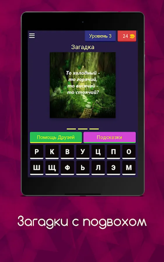 The game "Riddles with a trick" is an exciting game that helps develop logical thinking, intuition and ingenuity.