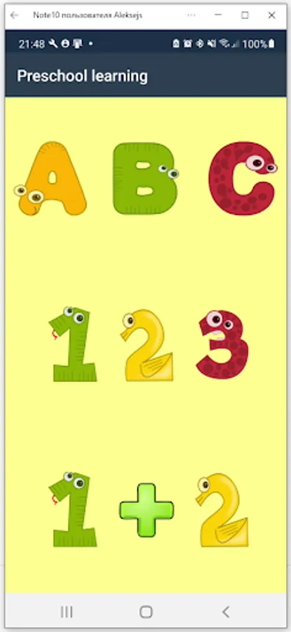 Preschool learning for kids 4 - 8 years. Program contains Alphabet function where kids can see and hear letters. Number function where kids can see and hear numbers. Mathematic function where kids can test themselves.