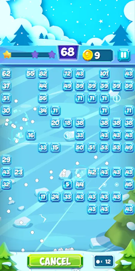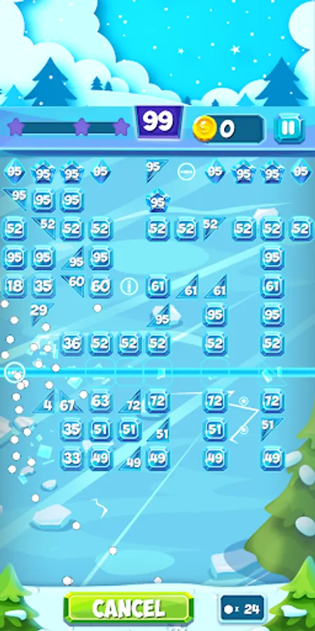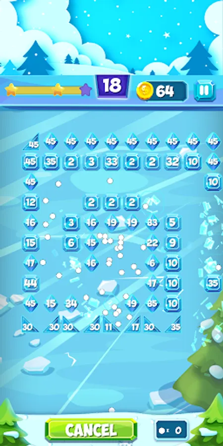 • Hold the screen to aim, swipe the ball to the ice bricks and break them all!