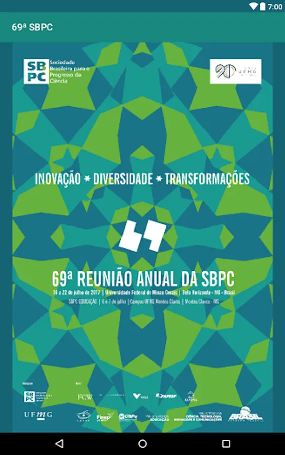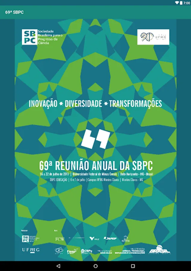 - Capture images with the logo of the 69th Annual Meeting of the SBPC.