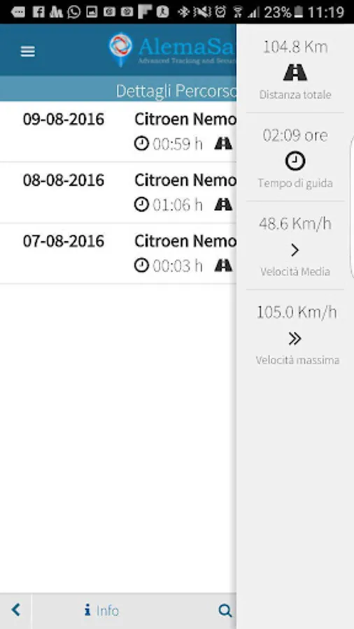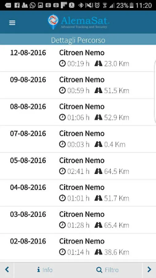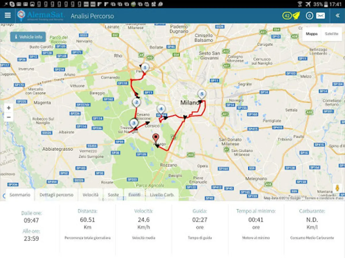The application provides access to Alemasat telematics services through their Smartphone or Tablet and you can: