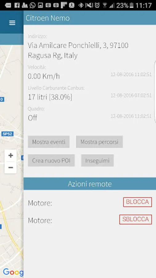 • activate the "inseguimi" function in case of attempted theft, to constantly monitor the vehicle's movements;