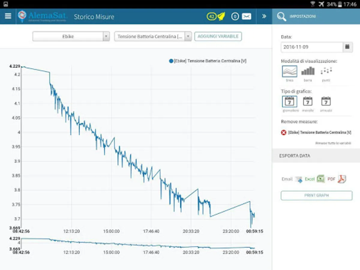In addition you will receive push notifications as alarm or as a simple reporting, the selected event. (Ie. Intrusion alarm, input / output POI, over speed, etc.)