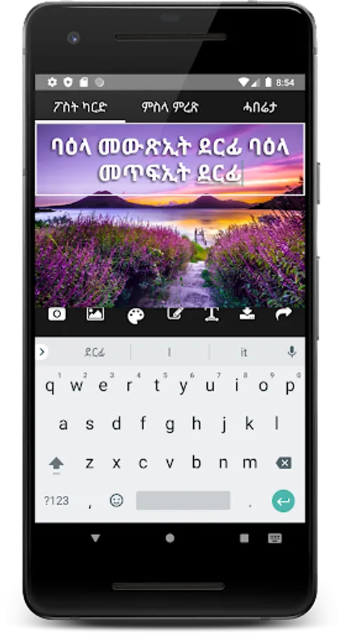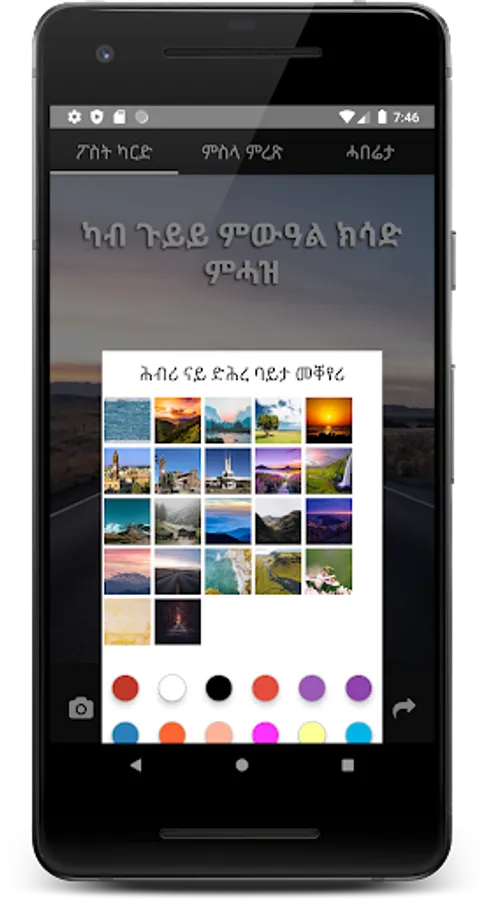 ፖስት ካርድ ካብ ልዕሊ 500 ምስላታትን ጥቕስታትን ብምምራጽ ክትሰርሕ ትኽእል