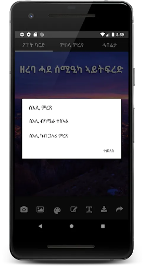 ፖስት ካርድ ካብ ናትካ ሰእልታት ናይ ሞባይልካ ትሰርሕ