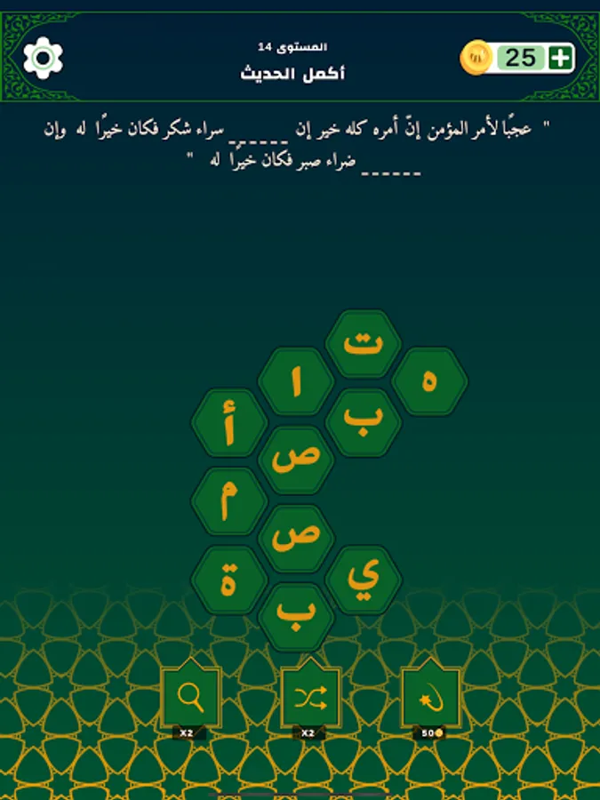 A distinct application that uses gamification to help stimulate your mind to learn, memorize, remember, explore and contemplate many of the words of 2000 true Hadith of the prophet (peace be upon him) in a fun and entertaining way.