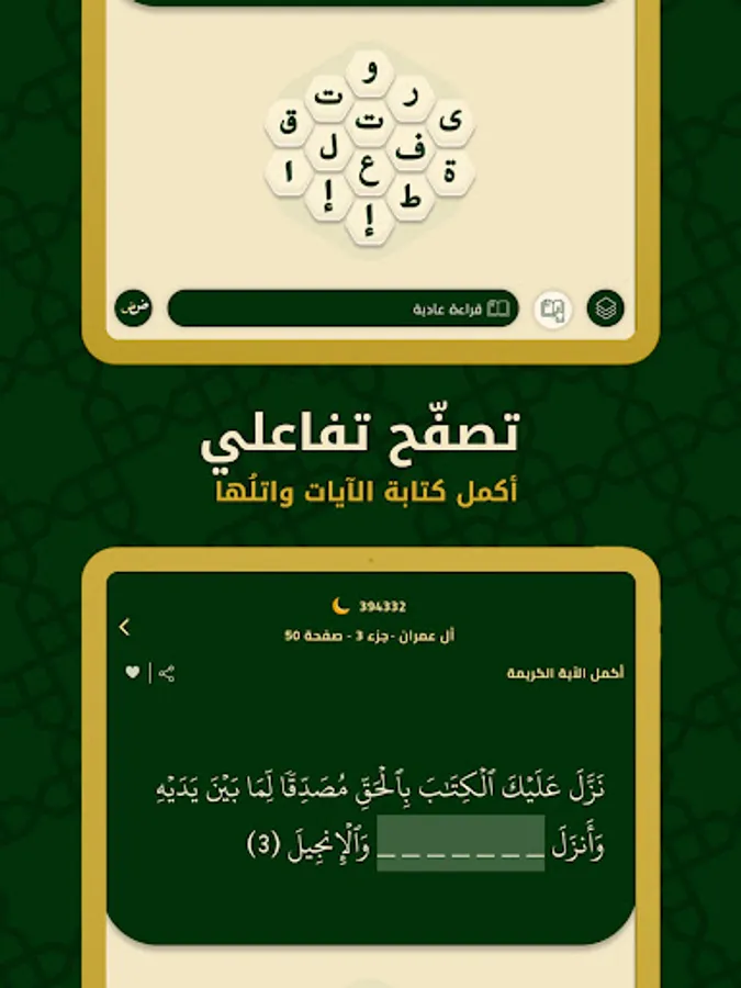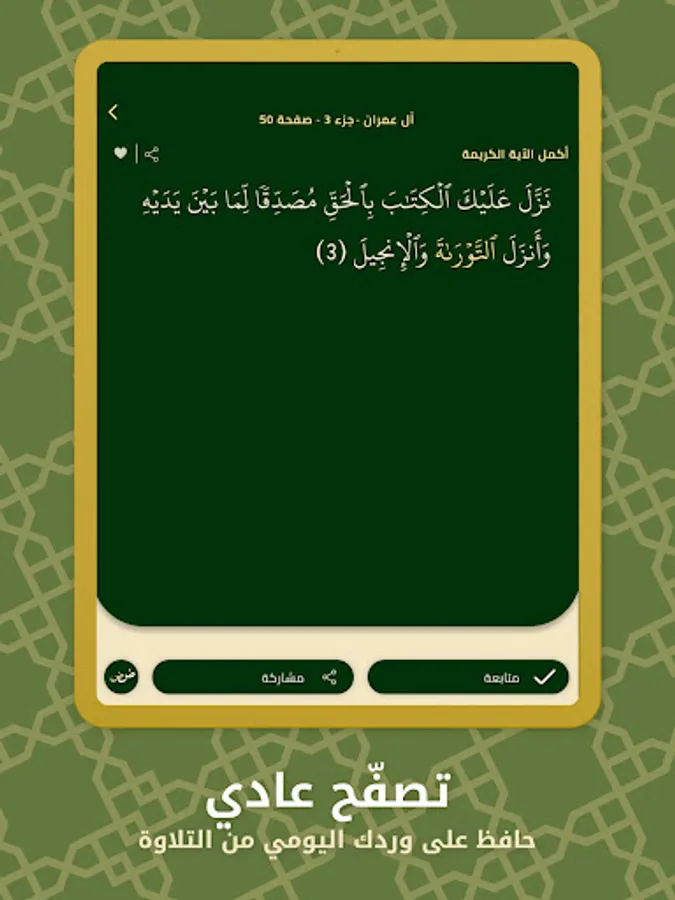 Hello there! This app is perfect for all Noble Quran Hafiz, or those who memorize parts or chapters from it, or those who want to strengthen their relationship with the Noble Qur’an and make it easier for them to memorize, contemplate, understand, and read it regularly. By doing so, you'll be able to receive the reward of this world and the Hereafter.