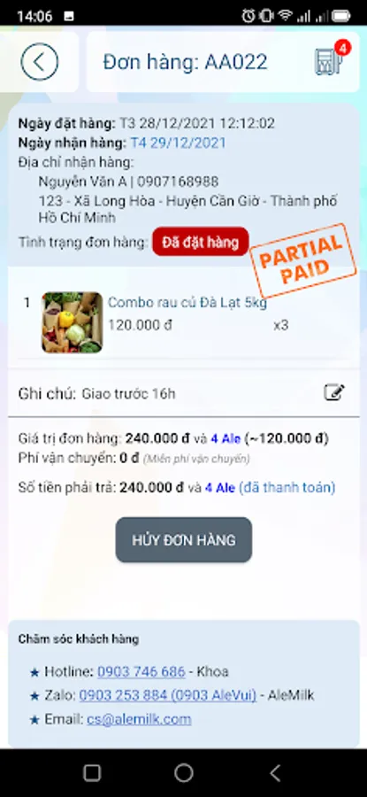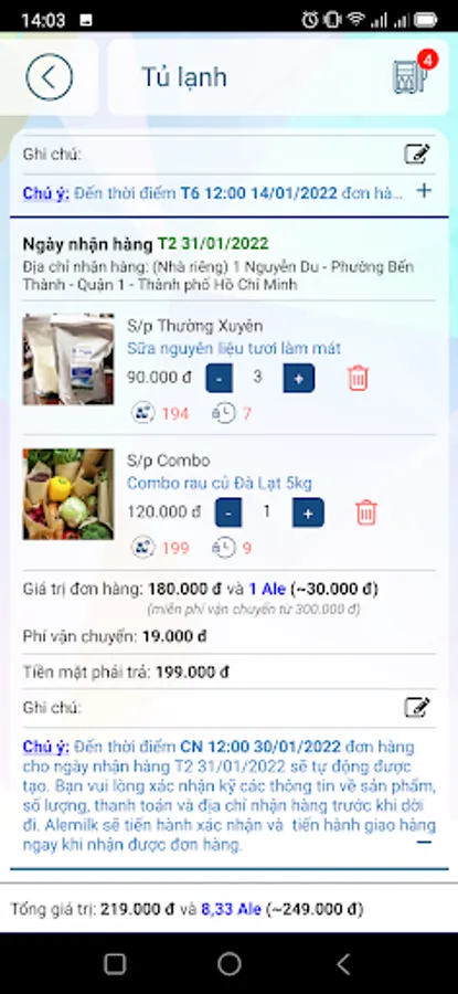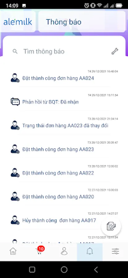 - The activities of ordering, canceling orders, loading Ale, giving feedback... are all notified and focused on Inbox for easy tracking and management.
