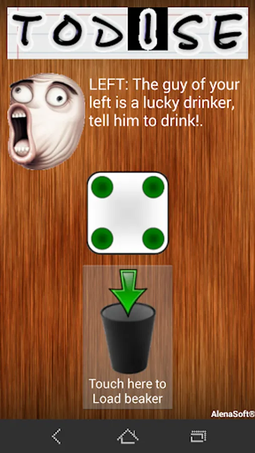 This version (1.0) offers two modes of play: with one and two dice. The first is as well called "fast" mode as a given there is always someone to drink, the second is the "slow" mode because you can spend good time until someone drinking again.