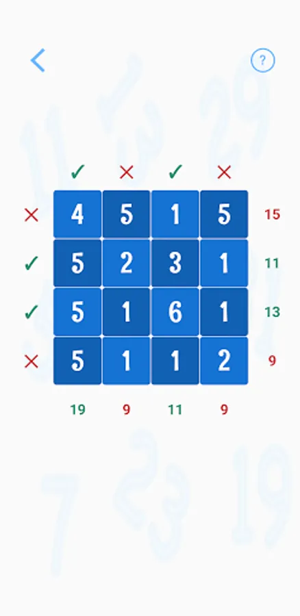 This is a game of skill and mental math. Swap numbers on the grid to make the sum of every row and column a prime number, it may take you 5 moves or 15 moves but every puzzle has a solution.