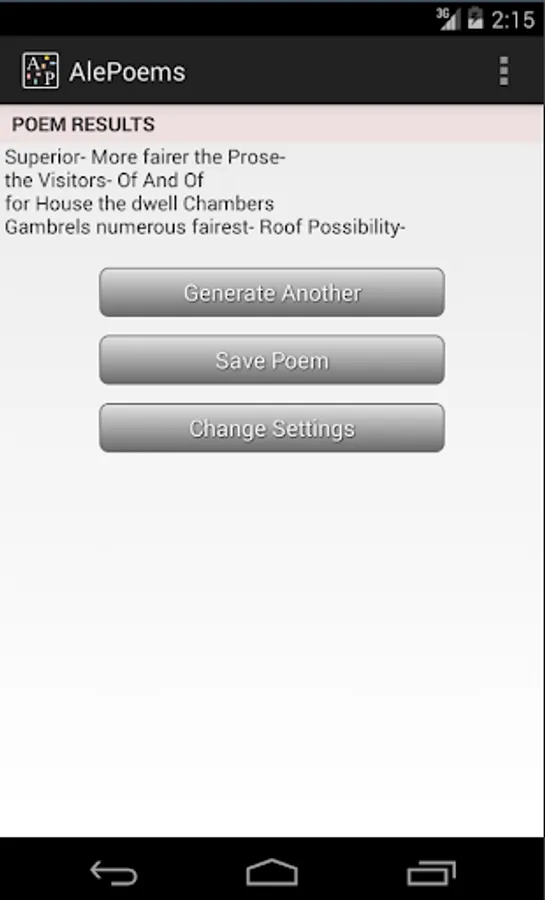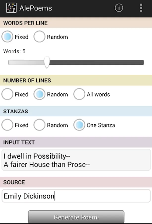 The AlePoems App, short for aleatory poetry, creates random poems from texts you enter.