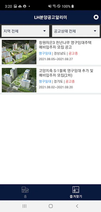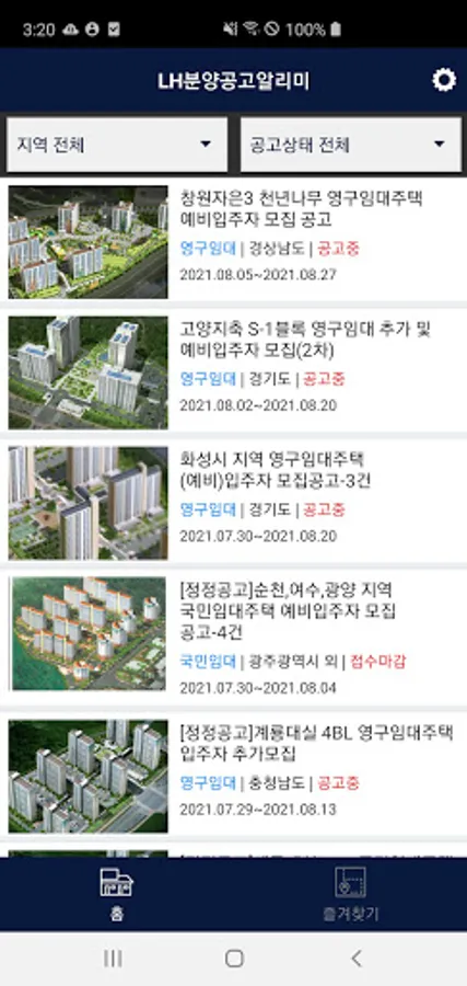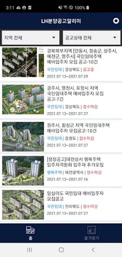 2. Favorites - You can check the announcements you are interested in at a glance through the region and status.
