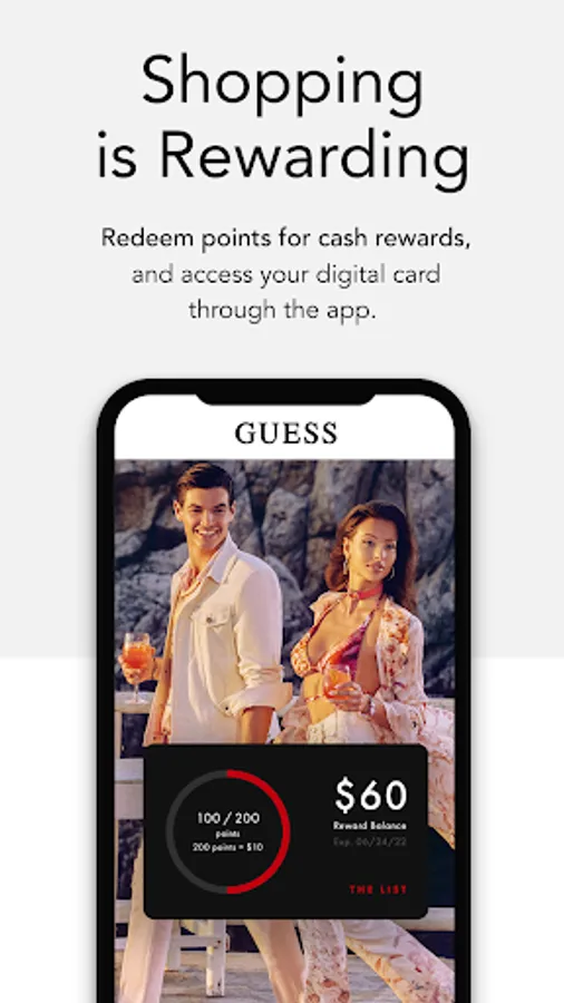 Pair the app with our GUESS List loyalty program to get the VIP treatment and earn bonus points. GUESS List members can redeem points for cash rewards, and access their digital card through the app.