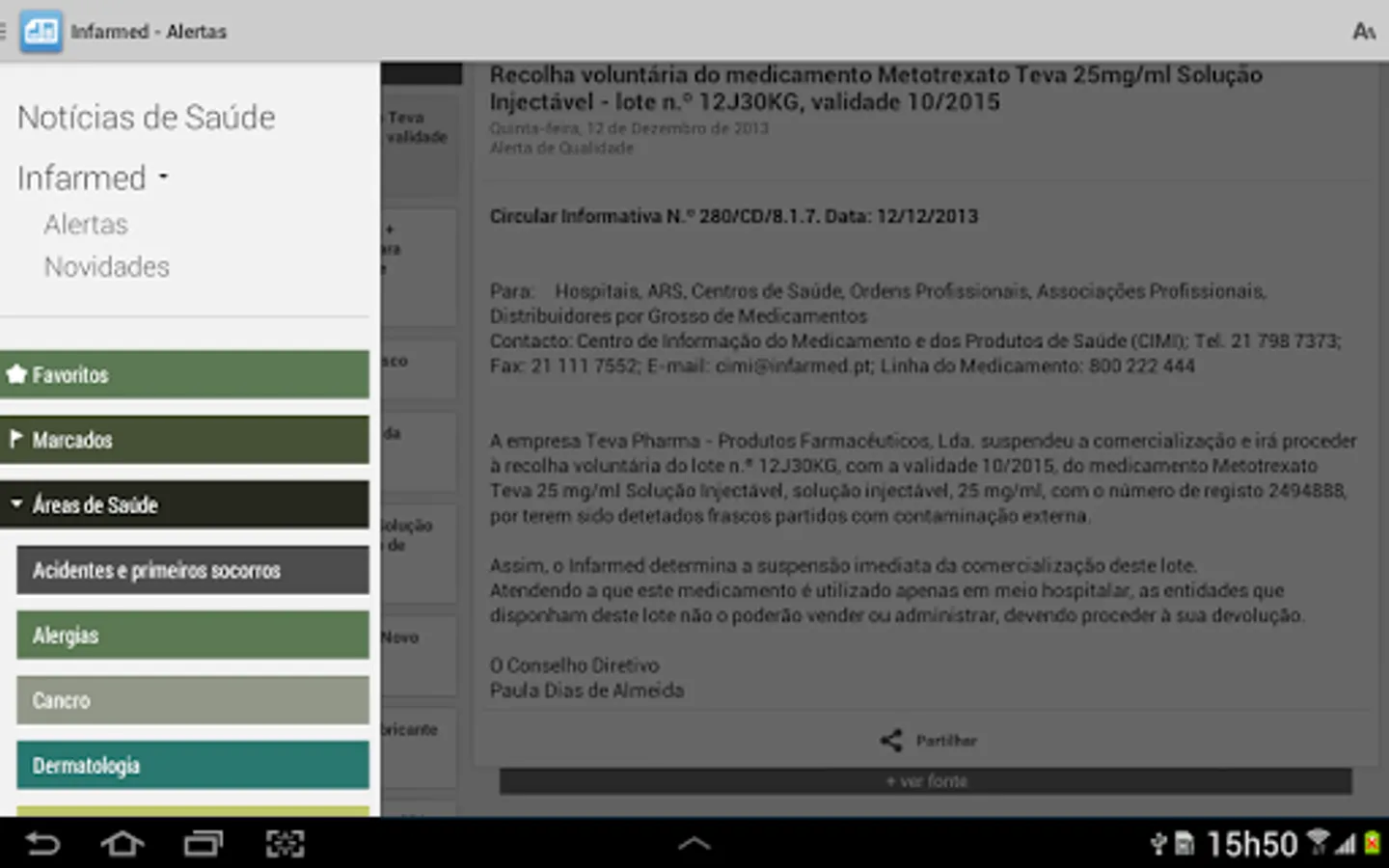 ALERT® HEALTH NEWS is a free application that works like an extension of today's most relevant national health portal - ALERT's Health Portal (www.alert-online.com/pt/health-portal).