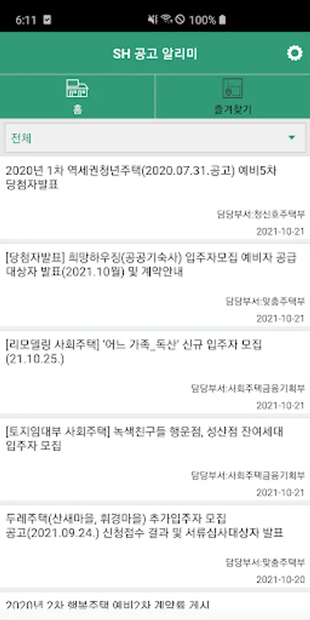 2. Favorites - You can check the announcements you are interested in at a glance through the region and status.