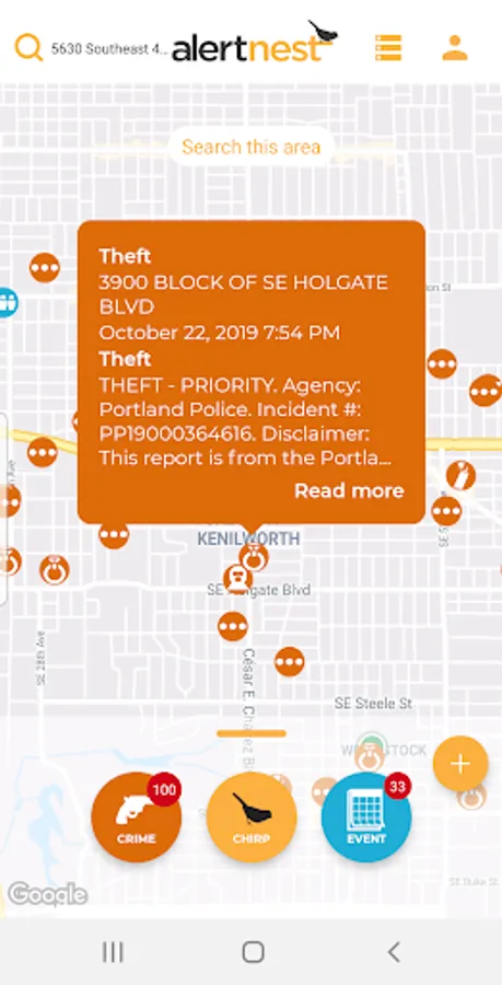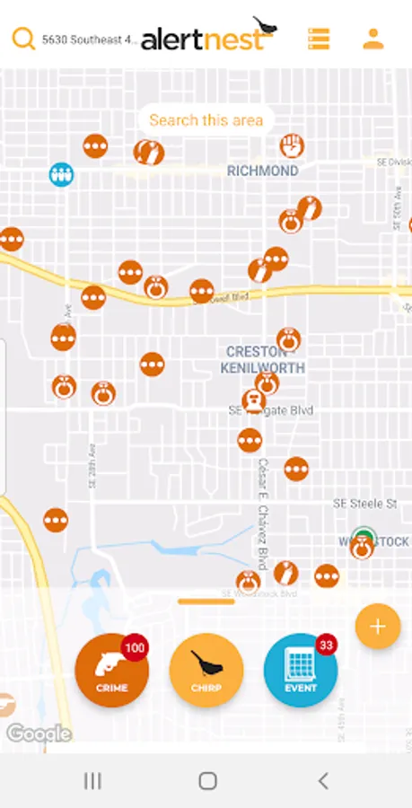 Know your nest. Alert the rest. Easily search information relevant to your area by customizing filters and saving multiple addresses to your account. See crime, events, and crowdsourcing all in on one map.