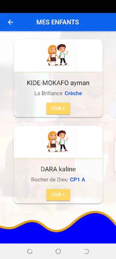 Les parents peuvent consulter les devoirs ,les bulletins,la liste de leurs fourniture et recevoir des alertes dès qu'il y a un événement concernant leurs enfants.