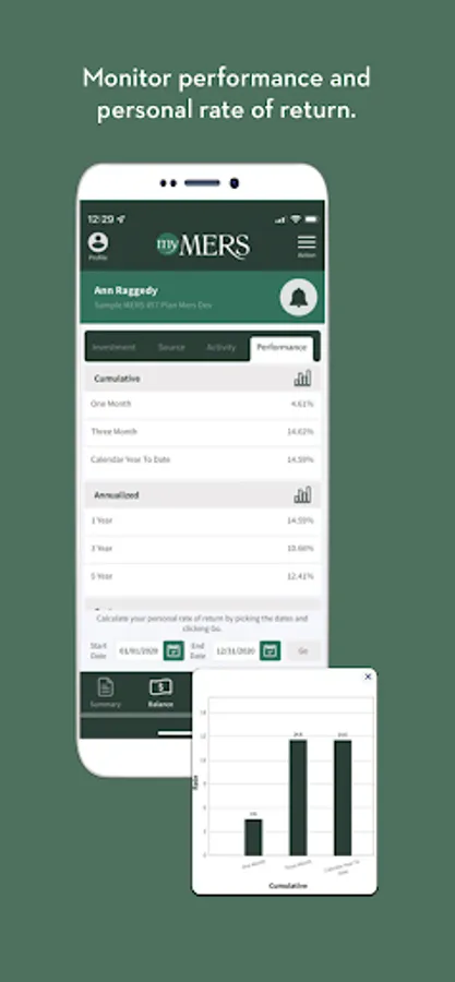 The myMERS mobile app allows MERS plan participants the ability to receive fast, free and secure access to account information using their existing online username and password to log in. Participants can receive account alerts, check balances, view investment performance graphs, and review contributions. The app also allows for quick access to review investment information, monitor loan data (if applicable), see personal rates of return and download account statements.