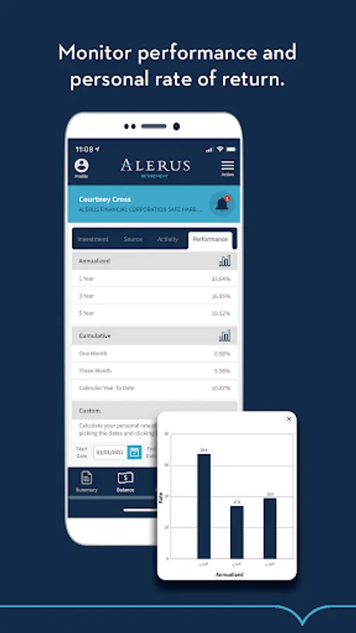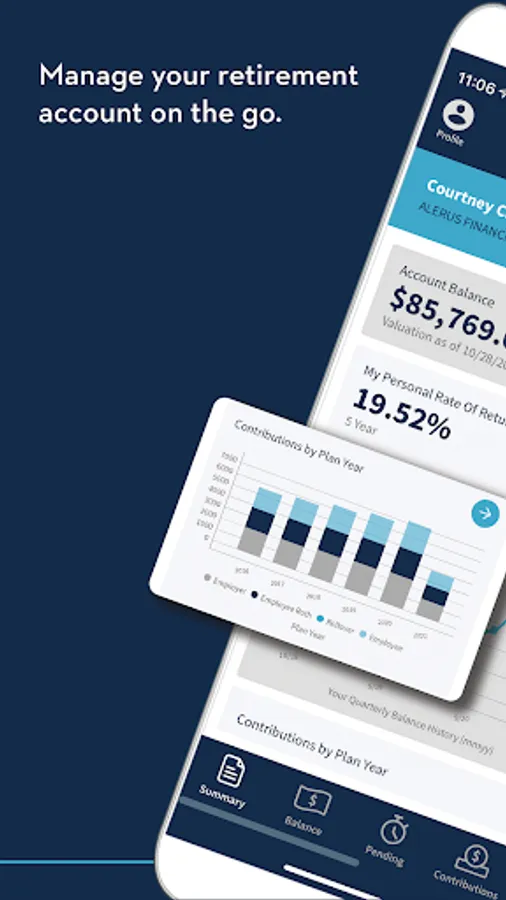 The Alerus Retirement mobile app allows participants of Alerus employer-sponsored plans to receive fast, free, and secure access to their account information. Access your account using your existing online username and password. Participants can receive important alerts, check balances, view investment performance graphs, and review contributions. The app allows for quick access to review investment information, monitor loan data (if applicable), see personal rates of return, and confirm contact details.