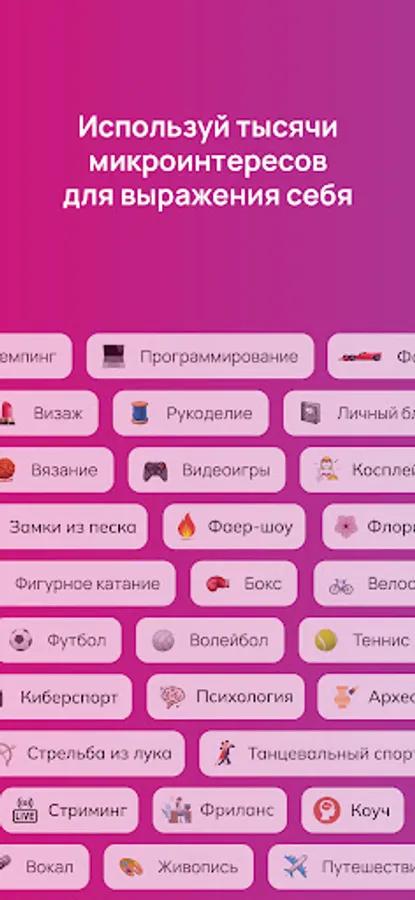 There are already more than 2000 interests, and their number will grow every week.