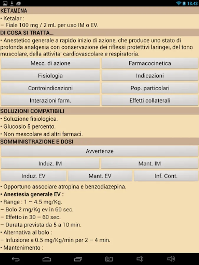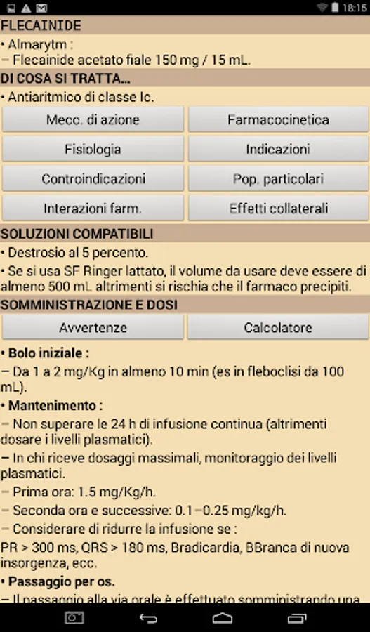 The drug cards besides reporting indications, contraindications, dosages, etc. also contain tables and tools for the calculation of doses and infusion rates.